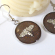 These adorable 20mm earrings feature a stainless steel round base and a cool brown toned background with silver honey bee charms under crystal clear resin.