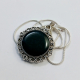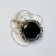Small round silver pendant with black resin "stone"
